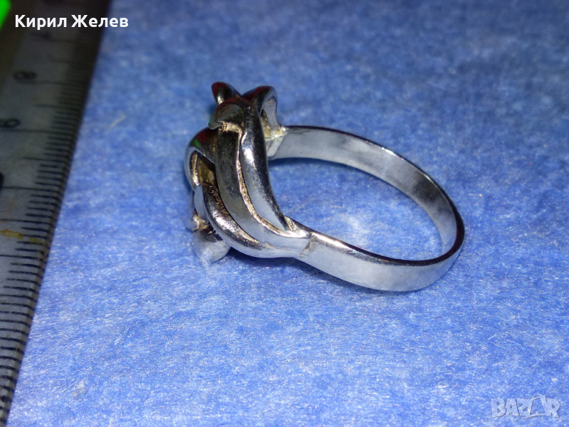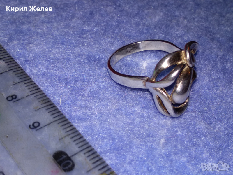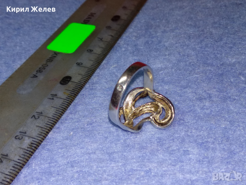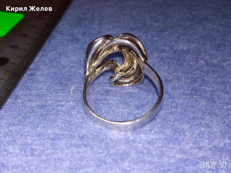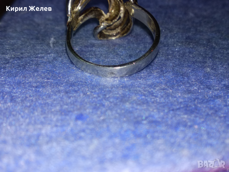ВЕЛИКОЛЕПЕН АЖУРЕН ВИНТИДЖ АРТ СРЕБЪРЕН ПРЪСТЕН СРЕБРО 925 с БЯЛА ПОЗЛАТА БИЖУТЕРСКА ИЗРАБОТКА 43781