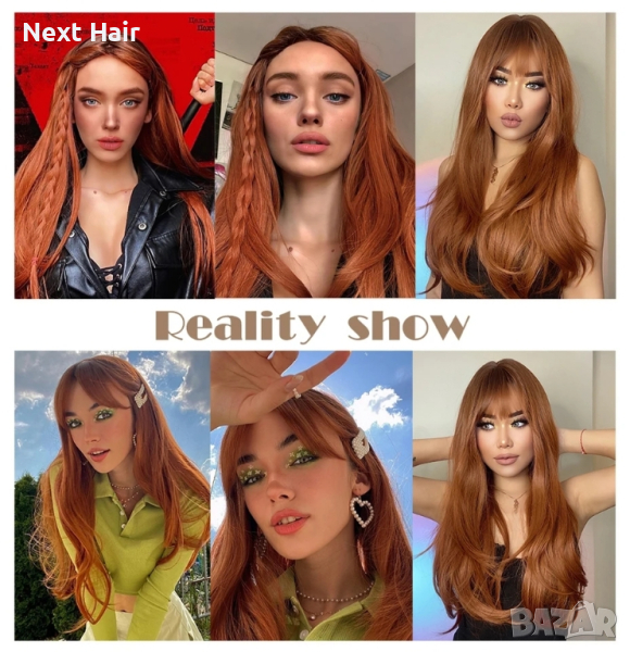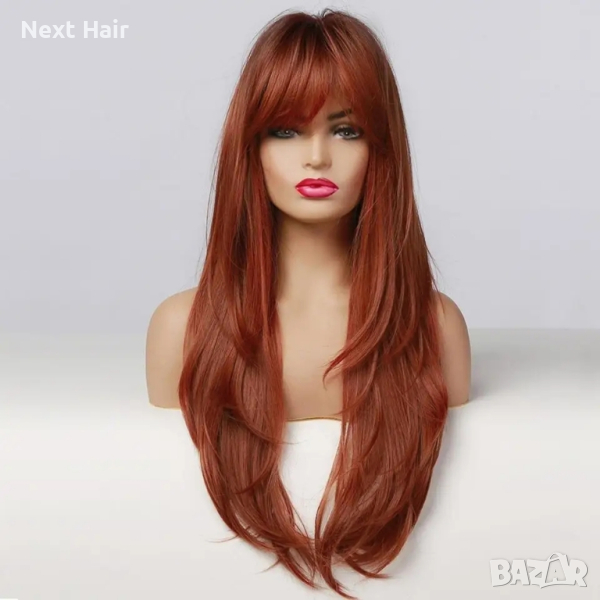 Оранжево кафява перука с тъмни корени → Обява 44664400