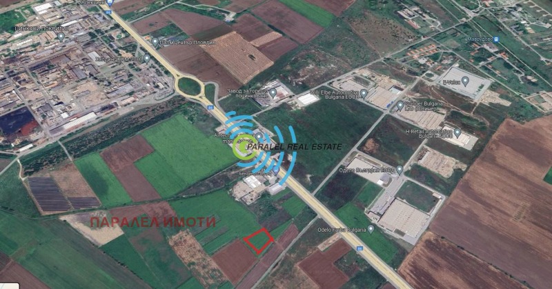 20071220 Парцел с правилна форма, удобен за проектиране с размери 60 х 96 м. Намира се в района набензиностанция Лукойл след колелото на Асеновградско шосе. На 170 метра от Асеновградско шосе. В съседство имоти със сменено предназначение за складови и производствени дейности.Имота е подходящ за изграждане на ЛОГИСТИЧЕН ЦЕНТЪР, ФОТОВОЛТАИЧЕН ПАРК, ПРОМИШЛЕН ИМОТ ЗА ПРОИЗВОДСТВЕНИ НУЖДИ. СКЛАДОВА ДЕЙНОСТ и ДР.