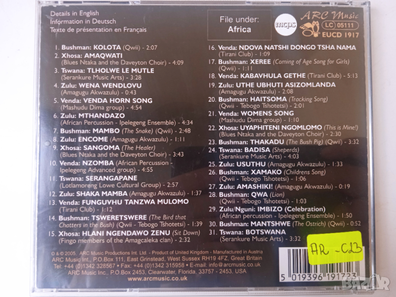 ЕТНО Африка оригинален диск - Ancient Civilisations Of Southern Africa 3, снимка 1 - CD дискове - 44665901 ЕТНО Африка оригинален диск - Ancient Civilisations Of Southern Africa 3, снимка 2 - CD дискове - 44665901 1/2