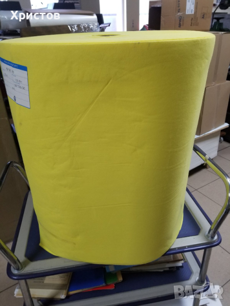 Продавам плат от нетъкан текстил немско производство на ролки с дължина 100 линейни метра и ширина 0.65 м. Плата е с дебелина 1.2 мм, може да се ползва за подсушаване, бърсалки, полиране, домакински кърпи и др. Цената е за ролка.