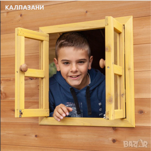 Изработена от висококачествено дърво, къщата за игра е здрава, издръжлива и сигурна за активности на открито.