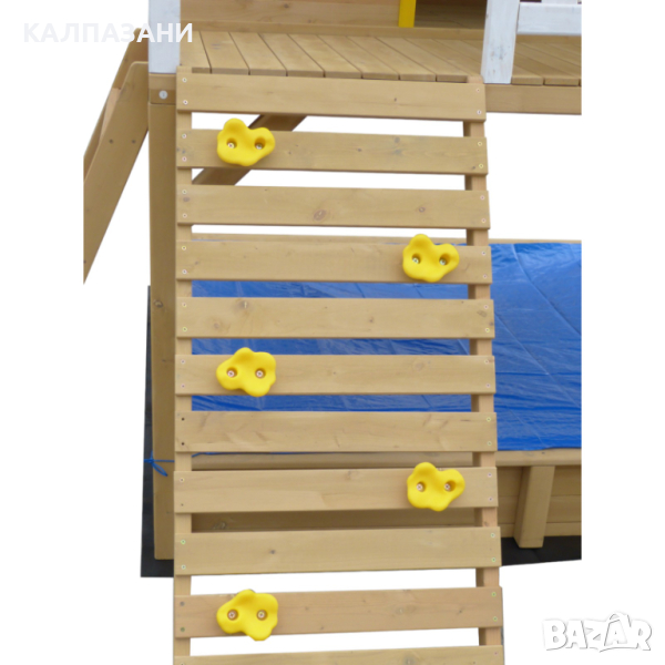 Къщата за игра е проектирана с внимание към детайла и предлага разнообразни възможности за забавление. Вътрешното пространство на къщата за игра е просторно и уютно, със стабилни стълбици, които допринасят за безопасността и комфорта на вашето дете.