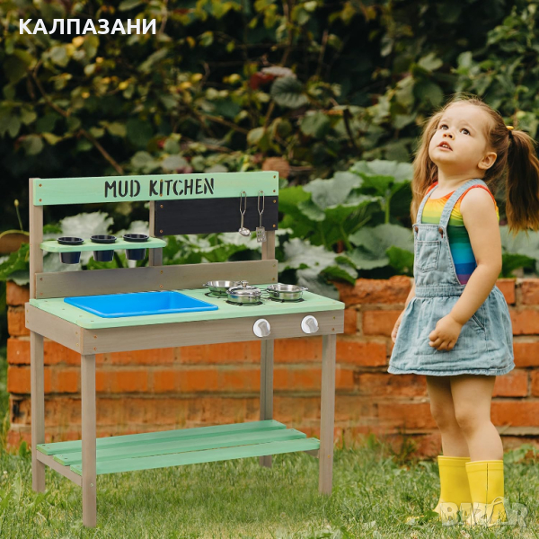 Детска Кухня от Дърво, за Игра на Открито, Двора, Градината, Подарък за Деца от 3 до 8 години