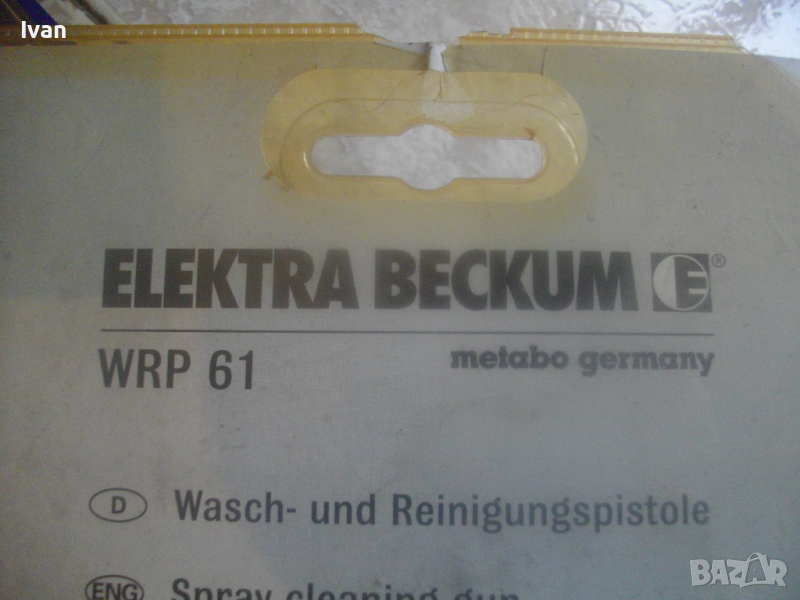 ОПИСАНИЕ на нов запечатан немски професионален писотлет за пясъкоструене за компресор със сгъстен въздух. Цена за 1 бр. - 79 лв. Предназначен за тежки натоварвания и голям дебит на въздух на голям компресор. Дебит препоръчителен 6-10 bar max 12 bar. Олекотено тегло от 0,4 кг. Инструментите са оригинални немски, с немско оригинално производство на професионалната марка METABO Germany - вписано и марирано на опаковките. Марка и модел на инструмента - Elektra Bekum EWP 61. Съвсев нов, запечатан, с ПВЦ прозрачна опаковка. Опаковките са леко разкъсани и това е причината за вноса им от чужбина. Характеристики - 130 L min 60-10 bar, max 12 bar - 0,4 kg. Масивен, метален, с дълъг удобен спусък и поставен оригинален щуцер бърза връзка с маркуч на компресор. Държина на инструмента - 285 мм.Оригинална немска опаковка, с леко разкъсване. Маркиран е на инструмента максималния дебит на налягане - 12 bar. Цената е за 1 бр. - 79 лв. Марка: ELEKTRA BEKUM WRP 61 - METABO - Germany. ХАРАКТЕРИСТИКА:
