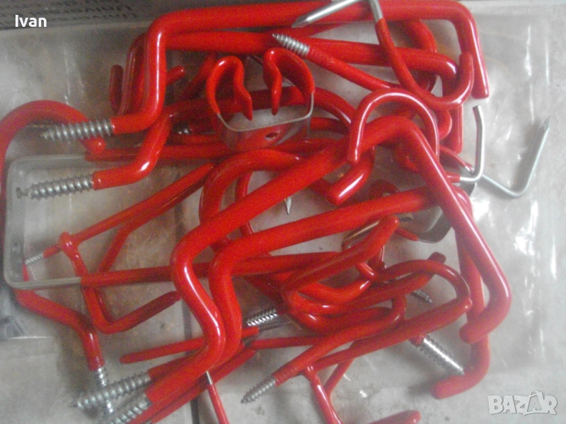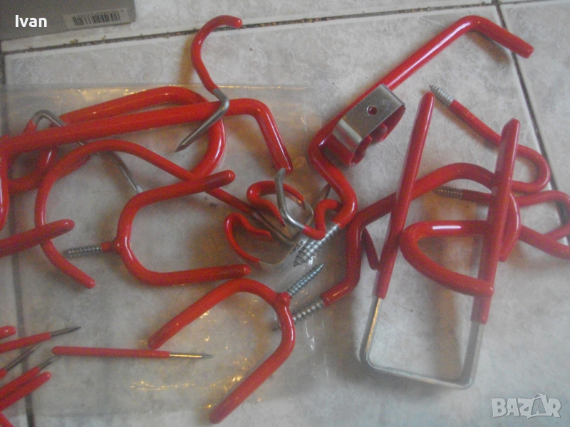 В комплекта са предвидени и дюбели за прикрепване на куките към стена или твърда повъхност.