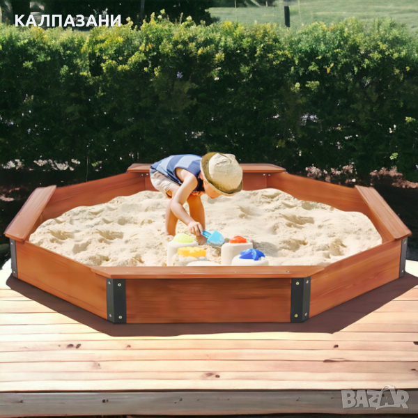 Голям Дървен Детски Пясъчник с Покривало OCTAGON, 199х199х23 см.
