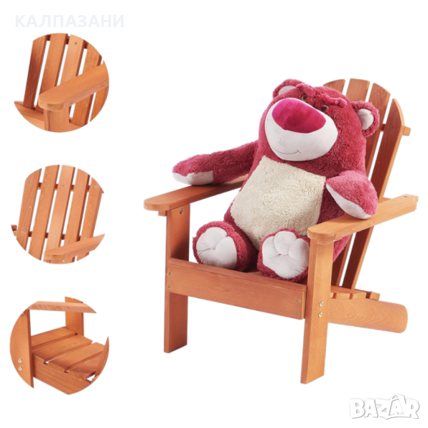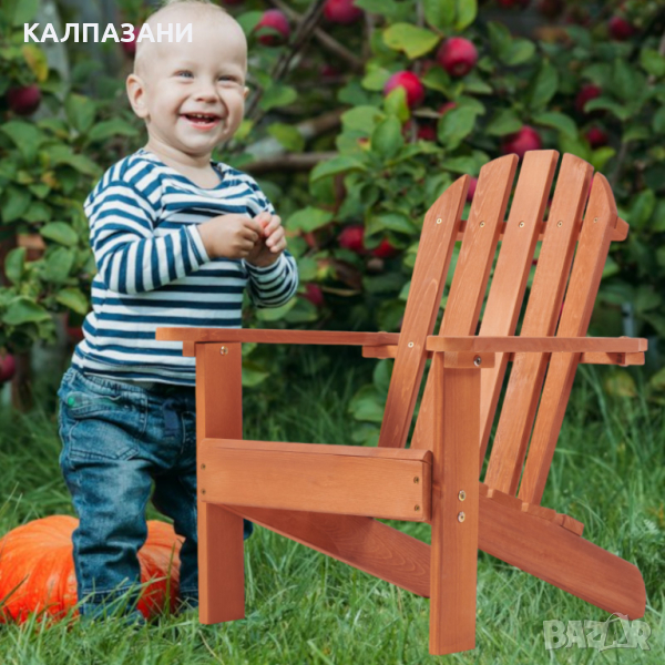 Детски Стол, Шезлонг Adirondack, Дървен, за Релаксация в Градината, Двора, Балкона, Терасата, Къмпин