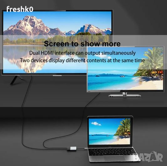 Нов преход от USB-C към 2хHDMI Splitter → Обява 44671285