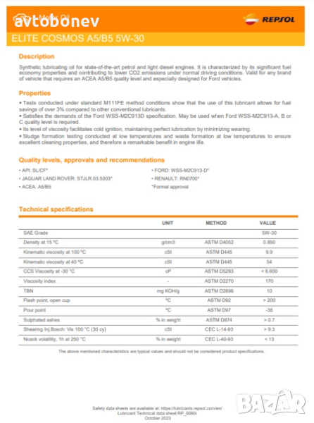 атмосферата при нормални условия на шофиране. Подходящо e за всеки автомобил, изискващ спецификация по ACEA A5/B5 и специално разработено за автомобили Ford.