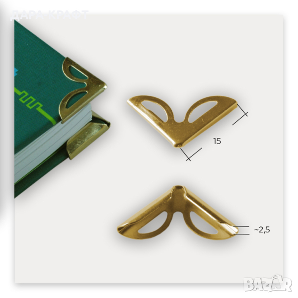 Предпазни ъгли за книги, албуми, тефтери, 15х15мм, 20бр