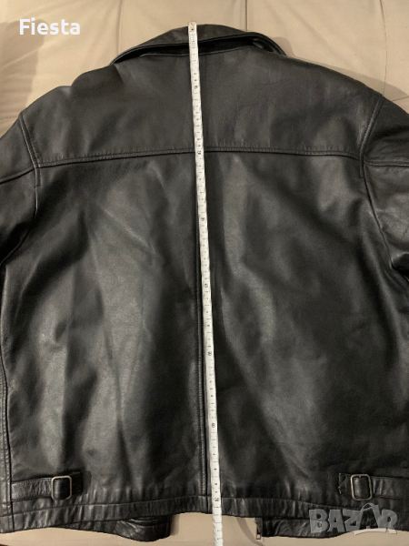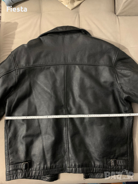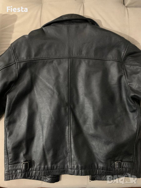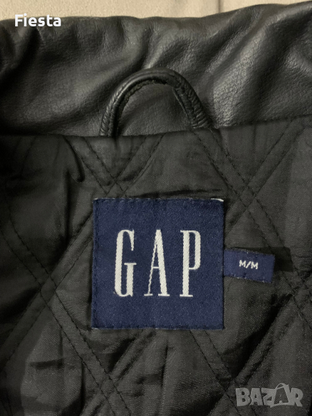 Мъжко яке, естествена кожа - телешки бокс. Марка GAP. Размер по етикет "М", но отговаря на "L". Дължина 72см. Широчина 62см. Един вътрешен джоб. Резервни копчета. Закопчаване с цип.