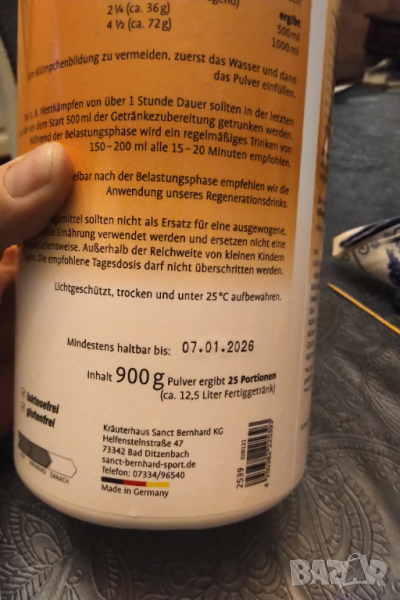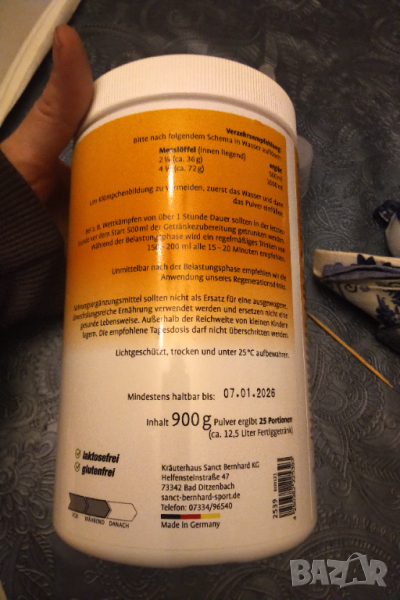 Нови купвани от германие на прах Sanct Bernhard Sport Isoton енергийна напитка червен портокал 1 кутий по 900 гр и една вишна 900 грама .