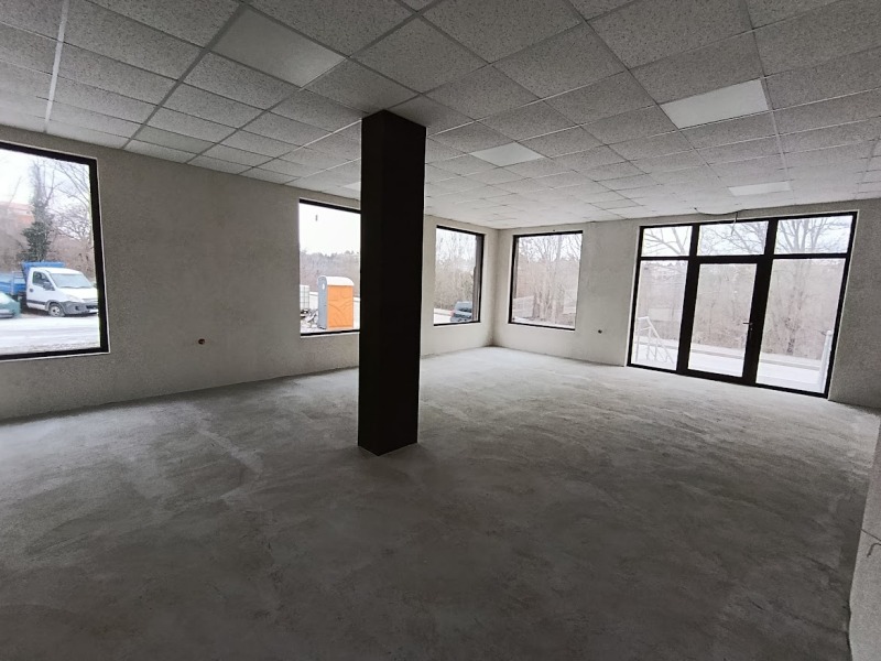 Помещението се състои от просторна търговска част и обособена офисна част, с баня и тоалетна към нея.