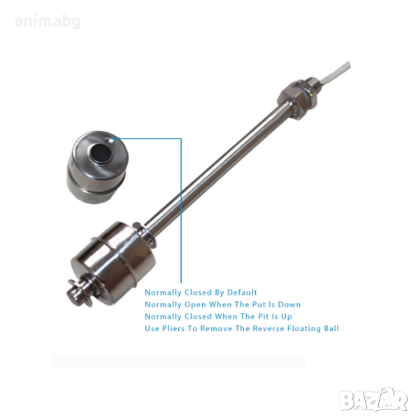 Това е мини поплавъчен превключвател от неръждаема стомана, който не съдържа живак.