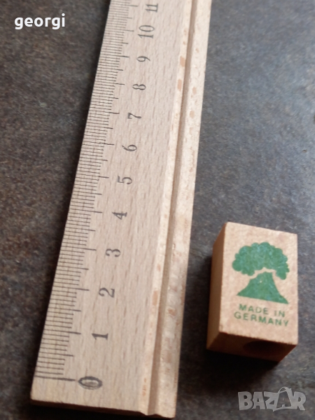 ретро немска дървена линийка с острилка за моливи → Обява 44680350