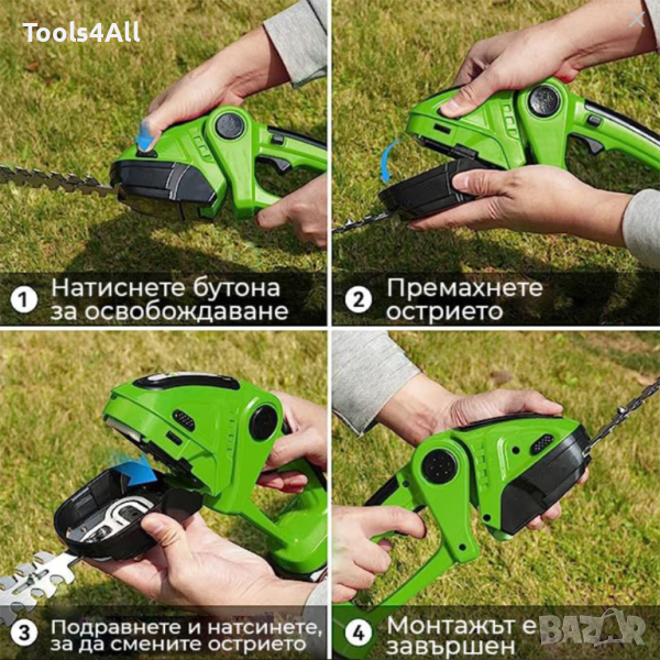 Комбинирана акумулаторна овощна ножица и храсторез 2 в 1! Тя е лека и удобна за работа, с регулираща се на 90° глава, която може да се настрои точно както желаете. Подходяща е за косене на трева, клони, храсти, зелени площи, ливади, плевели. Перфектен подарък за любителите на градинарството.
