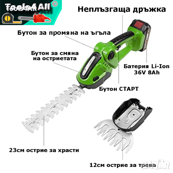 1бр. Акумулаторен 2в1 храсторез за трева и храсти