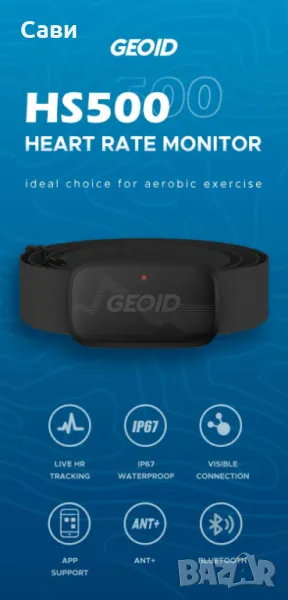 - GEOID HS500 сензор за сърдечен ритъм за гърдите. + 25 лв към цената.