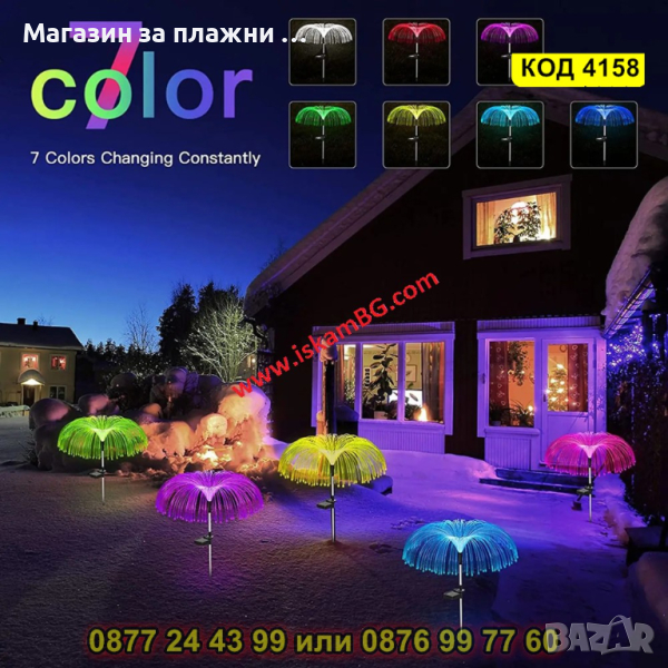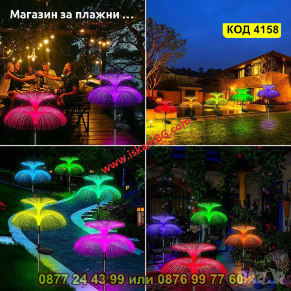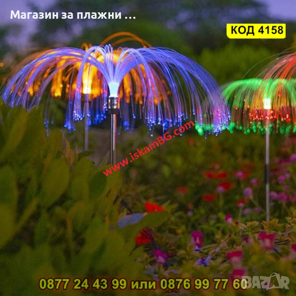 Соларната градинска лампа тип "МЕДУЗА" - 2 броя е с оптична и нежна завладяваща светлина. Със своята форма и плавно преливащи 7 цвята, ще пренесе всеки наблюдател във впечатляващия свят на "АВАТАР". Може да бъде изполвана във всяка една част в двора - край оградата или пътеката, в цветната градина или около градинските мебели.