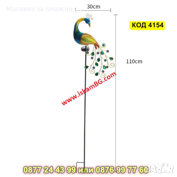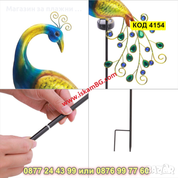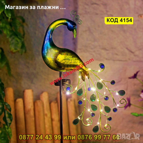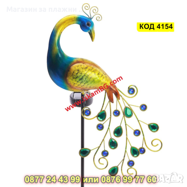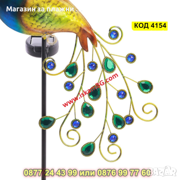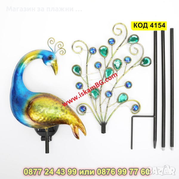 Градинска соларна лампа LED, във формата на паун - КОД 4154