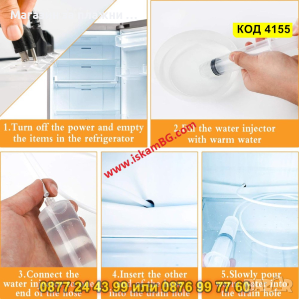 Поставете маркуча към спринцовката и го вкарайте в дренажния канал на хладилника.