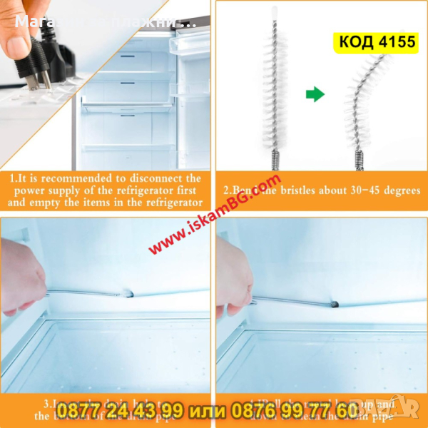 Използвайте гъвкавата тел с четка за отпушване и почистване дренажния отвор на хладилника