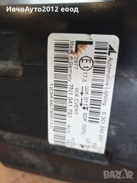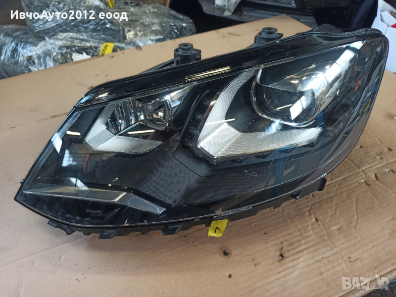 Оригинален ляв фар за Фолксваген шаран 2 биксенон лед. Лека забележка на ръба на стъклото от долната страна отбелязана със стрелка. Стъклото е здраво здрав корпус и захвати.