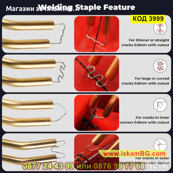 бързо и надеждно топлинно заваряване на пластмаса с помощта на скоби;