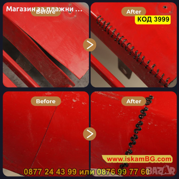 широк спектър от ремонтни операции: закрепване с телчета, заваряване, горещо изглаждане, горещо рязане, запояване на отвори;