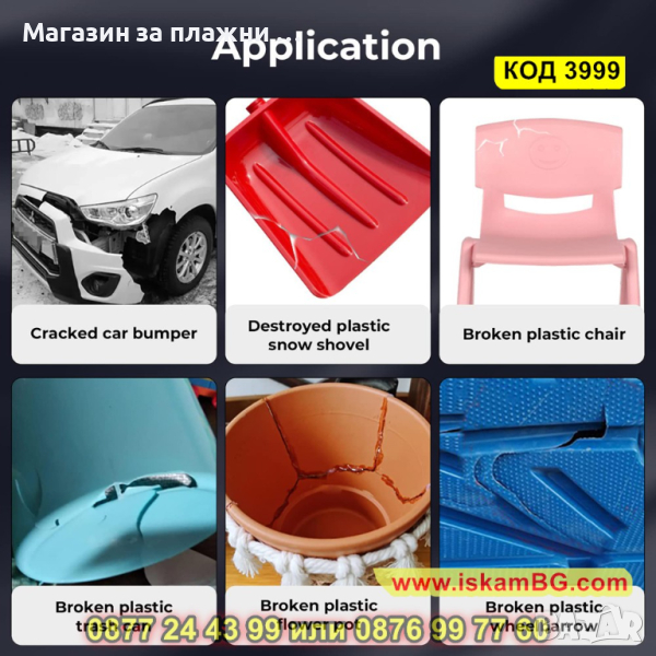 Подходящ за ремонт на повечето продукти и части, изработени от пластмаса;