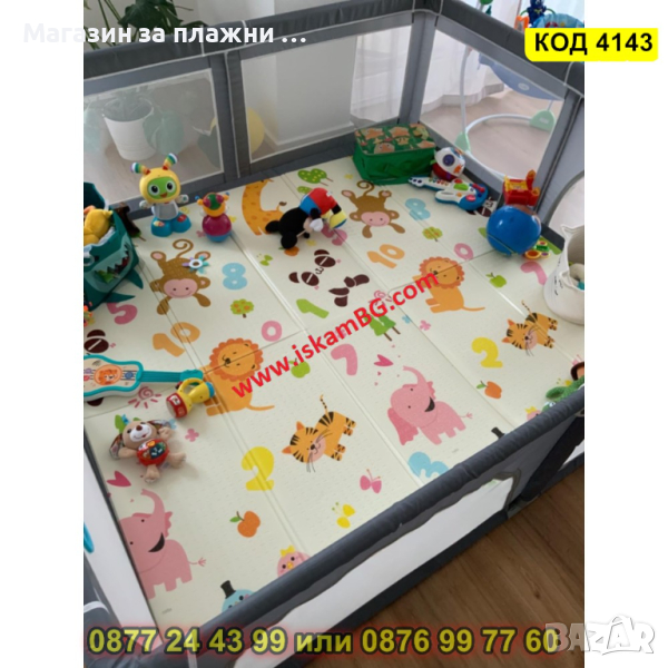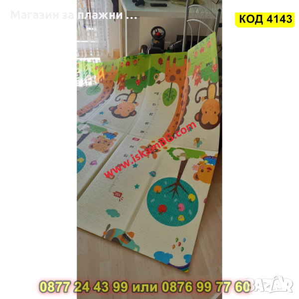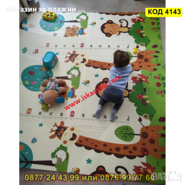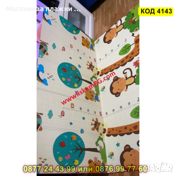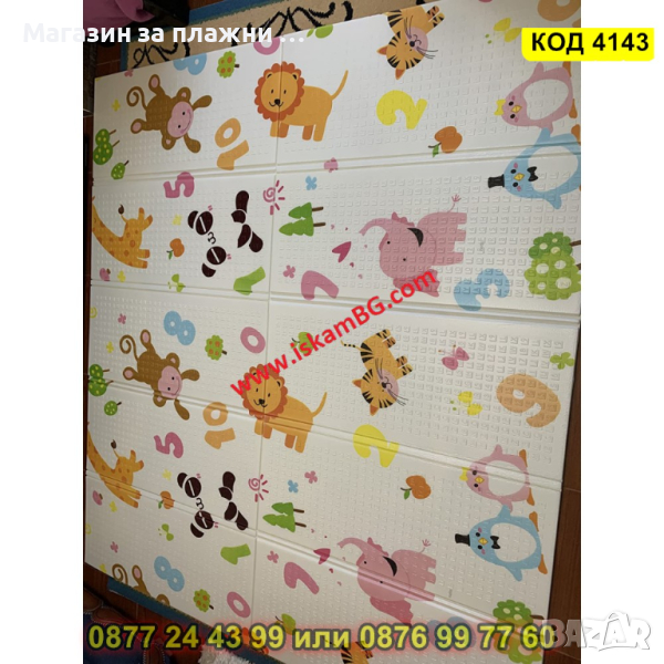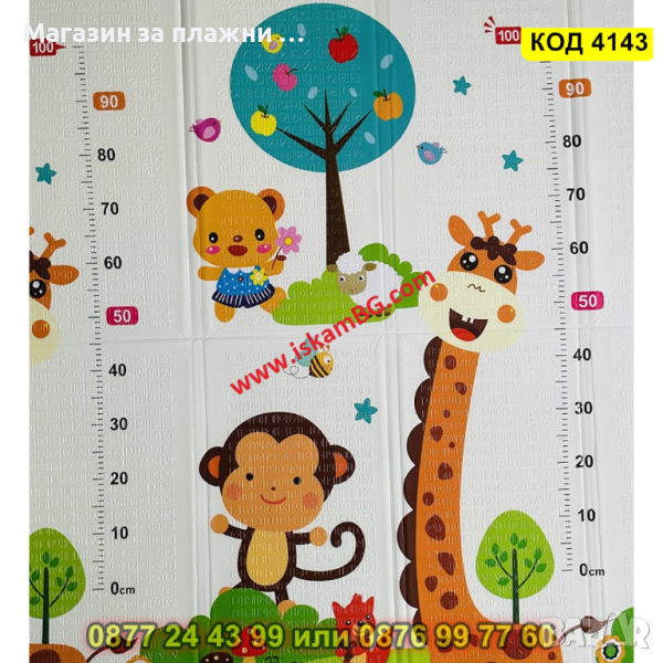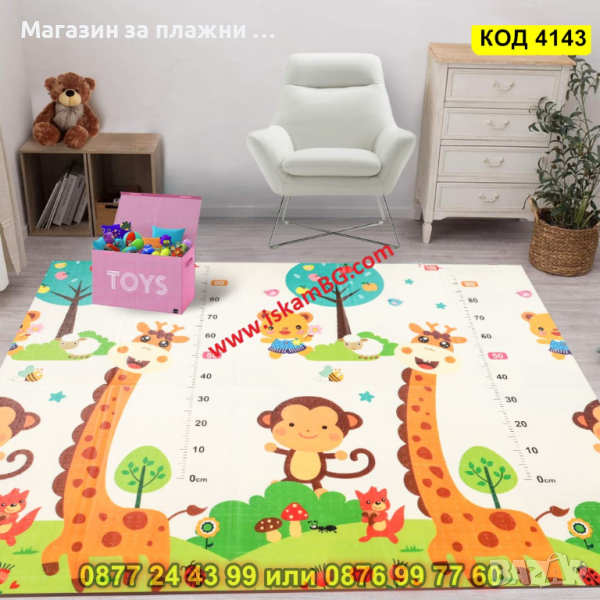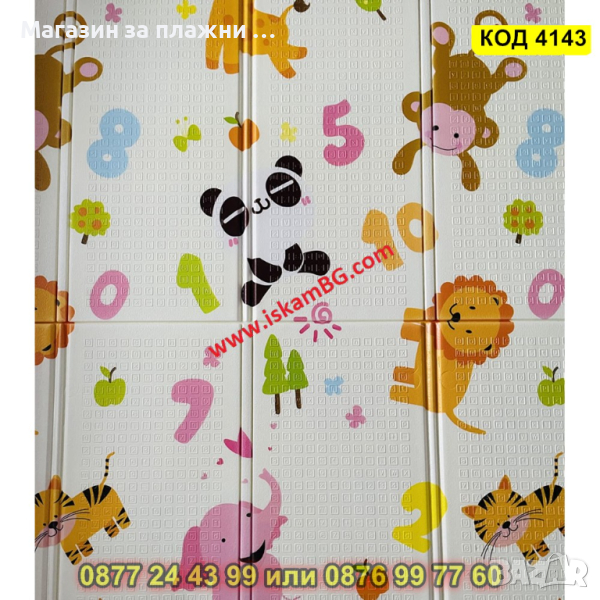 Сгъваемо детско килимче за игра, топлоизолиращо 180x150x1cm - Жираф и Цифри - КОД 4143