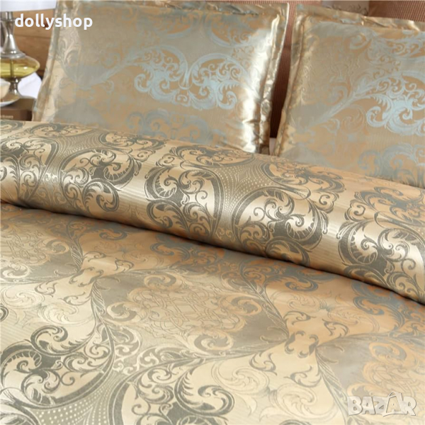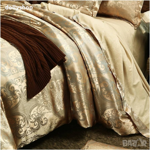 Комплект от 4 Части Жакард Сатен в Златно → Обява 44683462