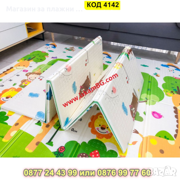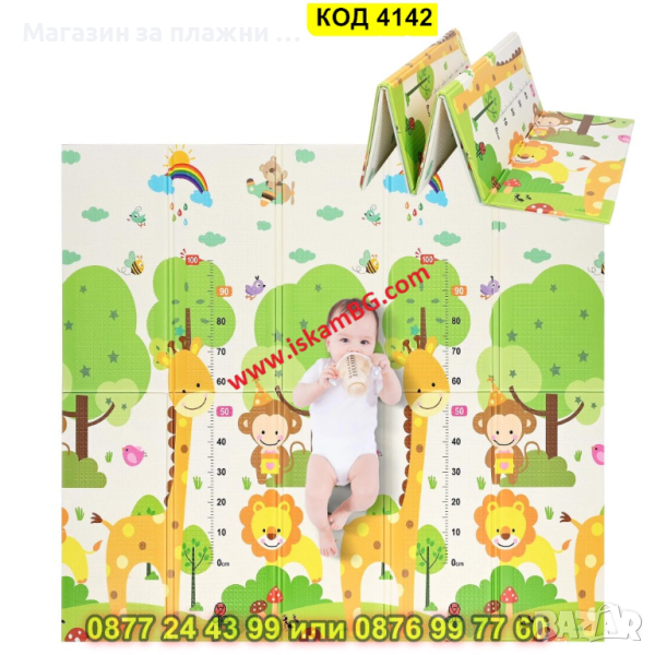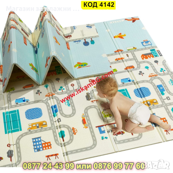Двустранно, сгъваемо килимче за пълзене и игра от XPE пяна. Материалът, от който е изработено килимчето е нетоксичен и напълно безопасен, което го прави подходящ за употреба от деца, дори и в най-ранна възраст.