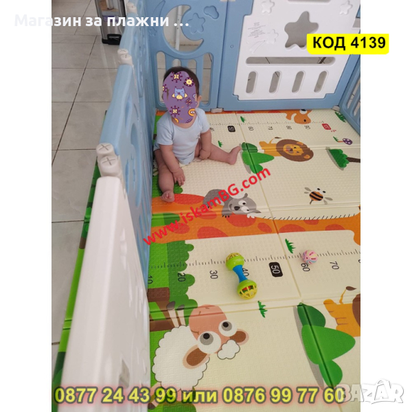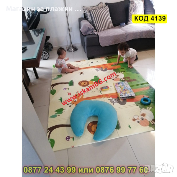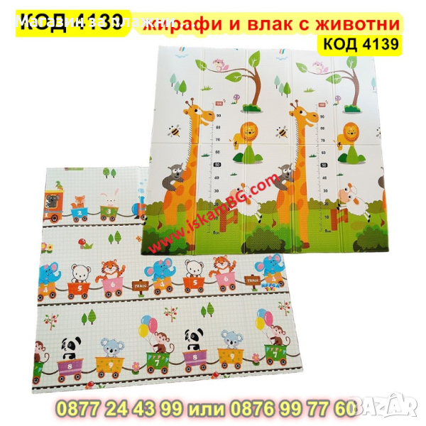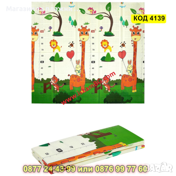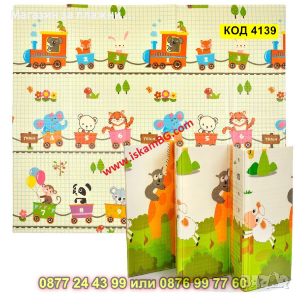 Подложка за игра с 2 страни - сгъваема - 180x200x1cm - модел жираф и влак с животни - КОД 4139