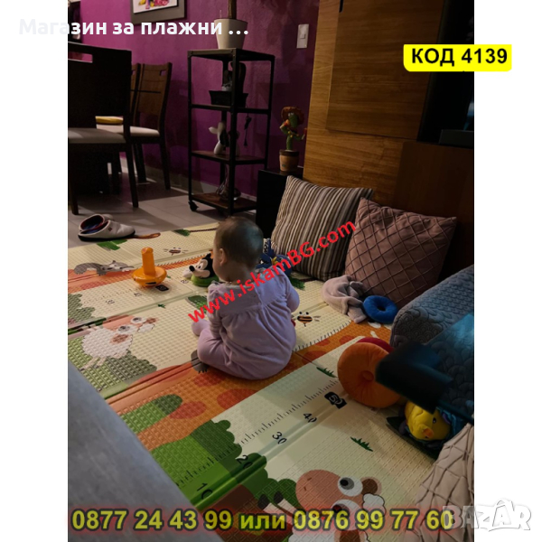 Килимчето изолира перфектно от студеният под. Меко е и комфортно, но в същото време достатъчно плътно и устойчиво на натиск. Чудесно буферира и обира удара при евентуално падане на детето. Осигурява защита на костното развитие на бебетата, като предпазва коленете при пълзене.