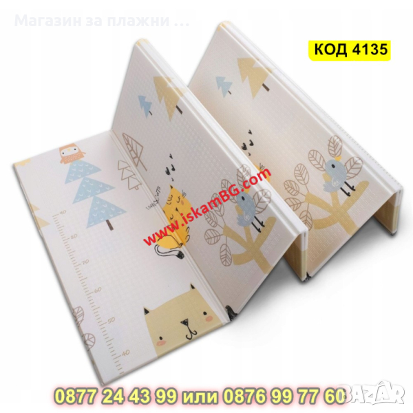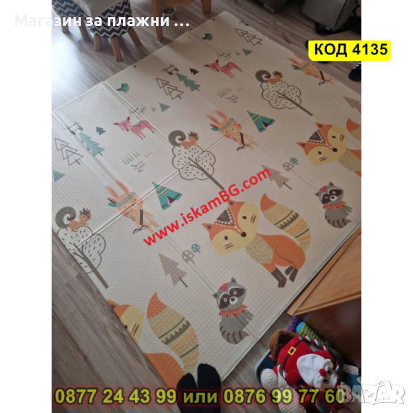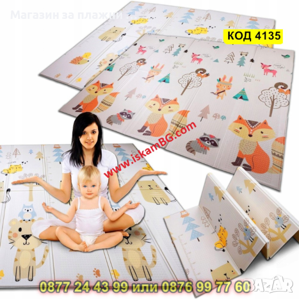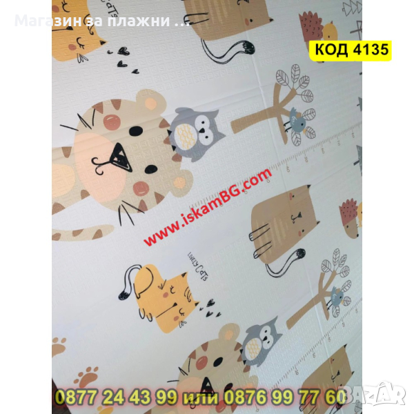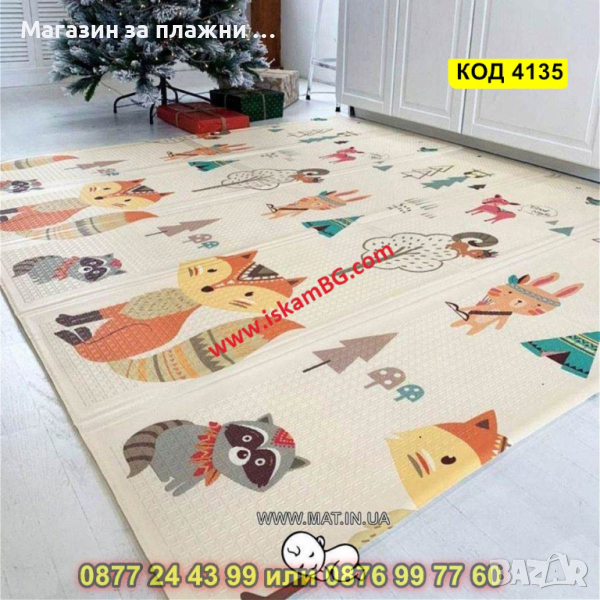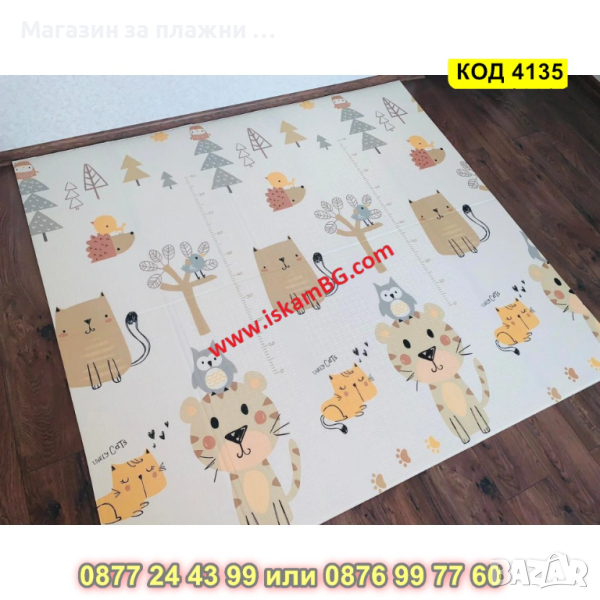Сгъваемо детско килимче за игра, топлоизолиращо 160x180x1cm - модел Лисица и Тигър - КОД 4135