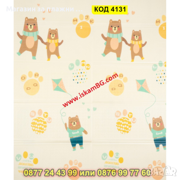Сгъваемо детско килимче за игра, топлоизолиращо 180x200x1cm - модел мече с хвърчило - КОД 4131