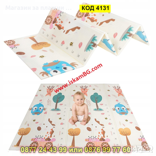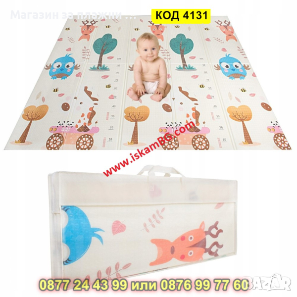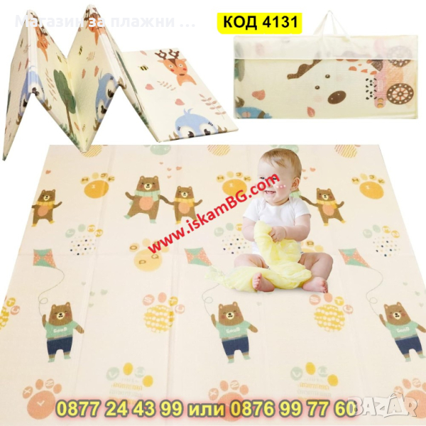 Двустранно, сгъваемо килимче за пълзене и игра от XPE пяна. Материалът, от който е изработено килимчето е нетоксичен и напълно безопасен, което го прави подходящ за употреба от деца, дори и в най-ранна възраст.