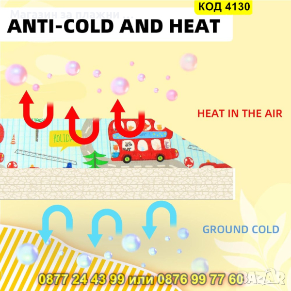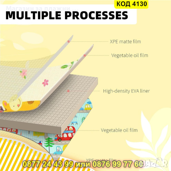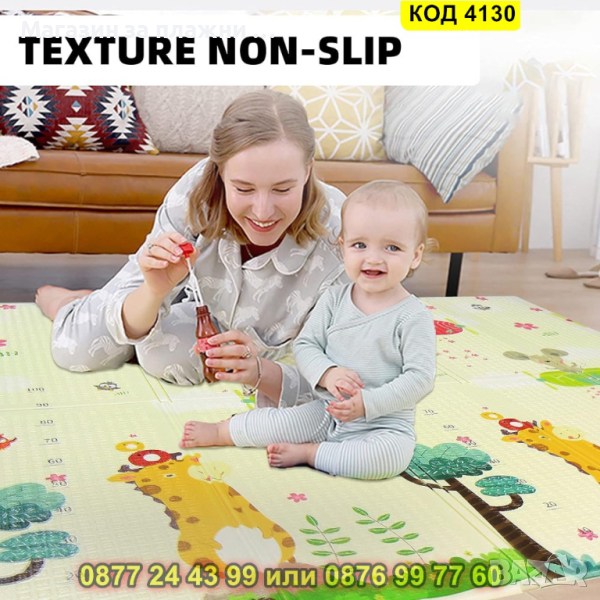 Килимчето изолира перфектно от студеният под. Меко е и комфортно, но в същото време достатъчно плътно и устойчиво на натиск. Чудесно буферира и обира удара при евентуално падане на детето. Осигурява защита на костното развитие на бебетата, като предпазва коленете при пълзене.
