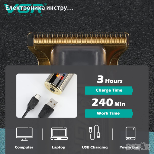 Безжична машинка за подстригване тример vgr073 за глава, брада, тяло.