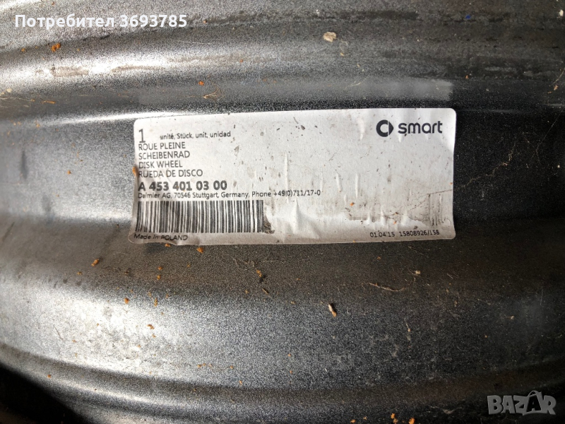 Железни джанти с датчици 4бр.Smart → Обява 44685327