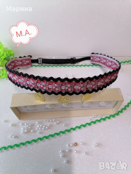 Ново. Ръчно изработена.Дамски Аксесоар за глава, декориран със зластисти пендари и шевици -косичник.