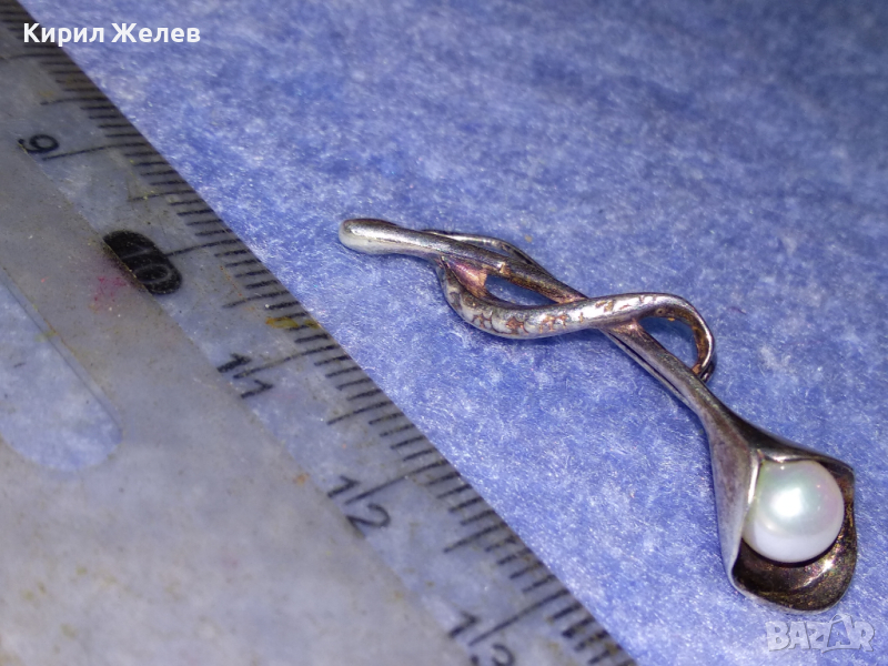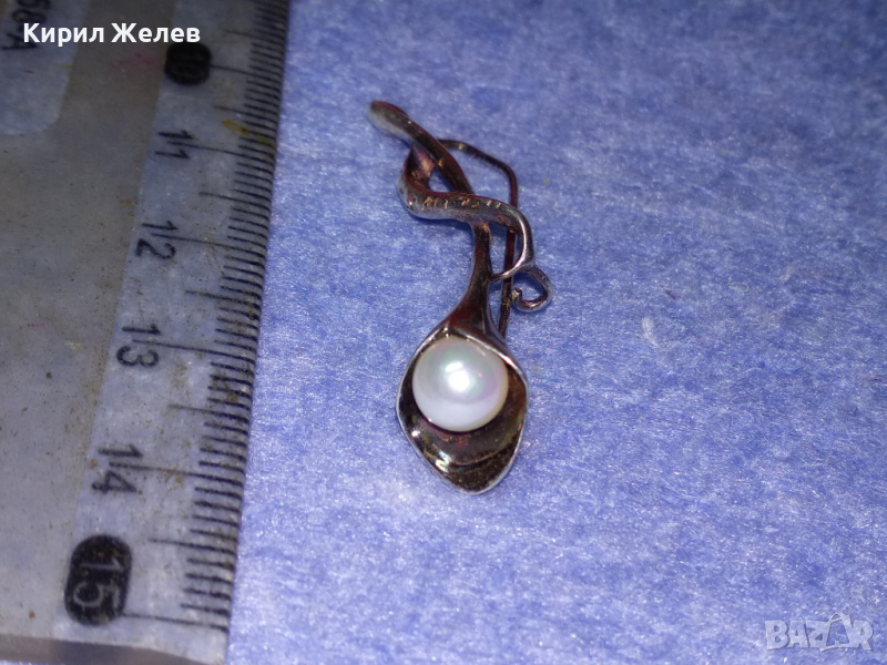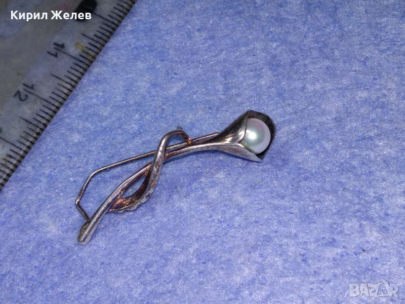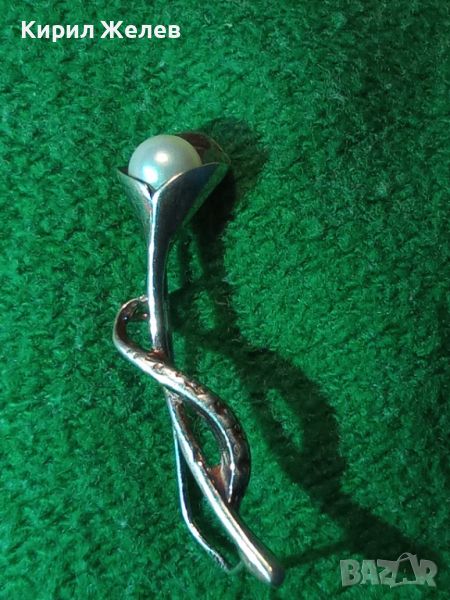 АР НУВО ПЕРЛЕНА СРЕБЪРНА БРОШКА СРЕБРО 925 с БЯЛА ПОЗЛАТА и ЕСТЕСТВЕНА БЯЛА ПЕРЛА РЪЧНА РАБОТА 43322