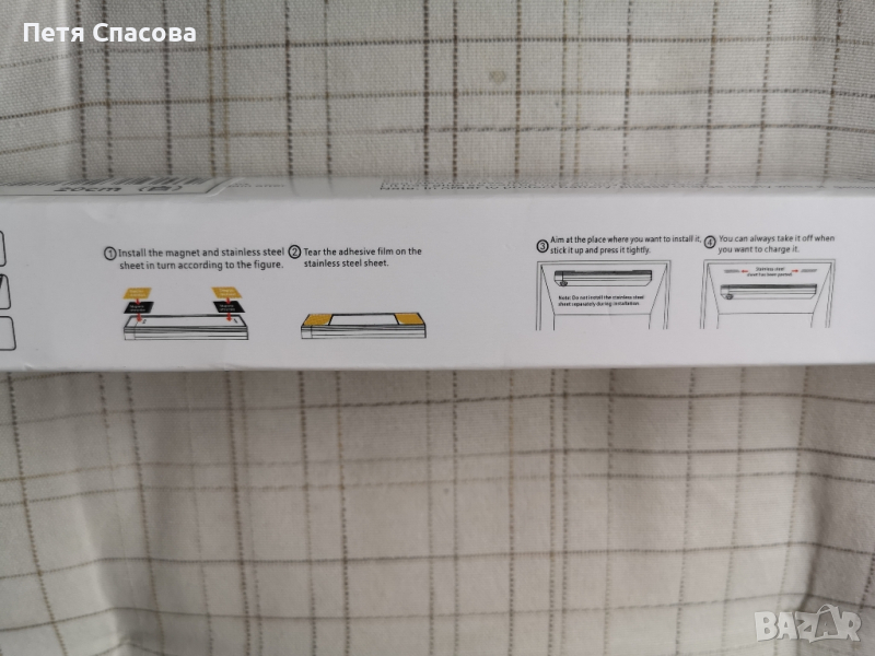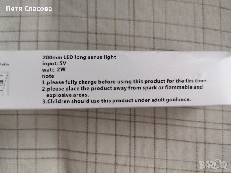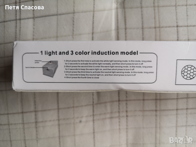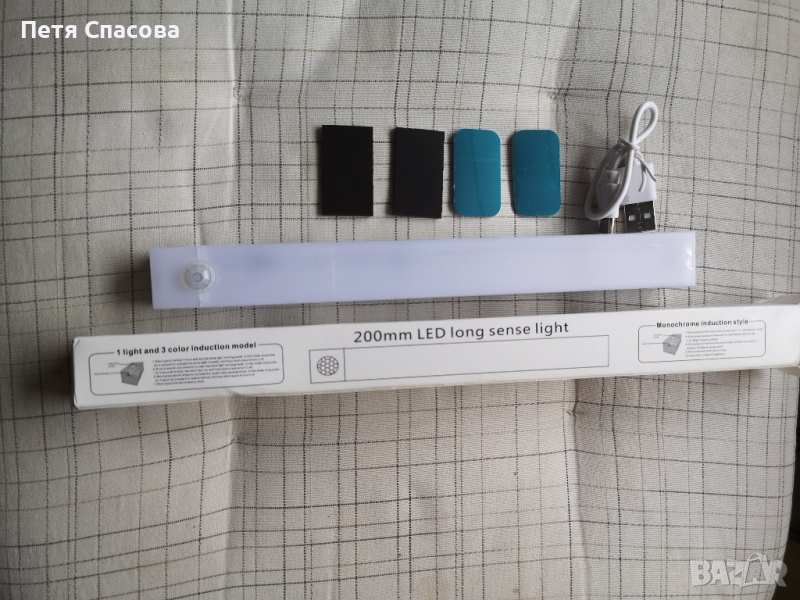 LED ЛАМПА със сензор за движение и светлина, достъпна за всеки.Тази лампа е лесна за инсталиране и преместване, където пожелаете, като ви дава максимална гъвкавост.Може да се използва в различни пространства като:гардероб, съблекалня, складово помещение, тоалетна, антре, стълбище, гараж,кухня, багажник за кола и много други.Лампата съдържа 13 светодиода и е с дължина 20см, студено - бяла светлина.Режими на работа:РЕЖИМ 1 (първо натискане - 1 мигане) Режим винаги включен. Лампата няма да изгасне дори и да няма движение.РЕЖИМ 2 (второ натискане - 2 мигания): Нощен режим на сензор за движение. Автоматично стартиране при засичане на човешко движение и околна яркост е ниска - включва се само през нощта и пести батерията. Ъгъл на работа 120 градуса и приблизително 3-5 метра. Автоматично изключване след 15 секунди без засичане на движение.РЕЖИМ 3 (трето натискане - 3 мигания): Режим на сензор за движение. Автоматично стартиране при засичане на човешко движение, независимо от околната яркост - идеално за места със слаба външна светлина: гараж, складово помещение, чекмеджета и др.Регулирането на яркостта става чрез продължително натискане на страничния бутон до желаното ниво.Лесен монтаж с помощта на включените двустранни магнитни ленти. Уверете се, че повърхността е гладка и равна за оптимално фиксиране. За повърхности в среди като кухнята се препоръчва предварително обезмасляване.Залепете първата лента към корпуса на лампата и отстранете защитното фолио от втората. С магнитните ленти една върху друга насочете лампата към мястото, където искате да се монтира и натиснете силно, за да я фиксирате. 400mah литиево-йонна батерия, която може да се презарежда с помощта на включения USB-C кабел. Продължителността на светене на батерията е до 60 дни в режим на сензор за движение и максимум 2 часа в непрекъснат активен режим.