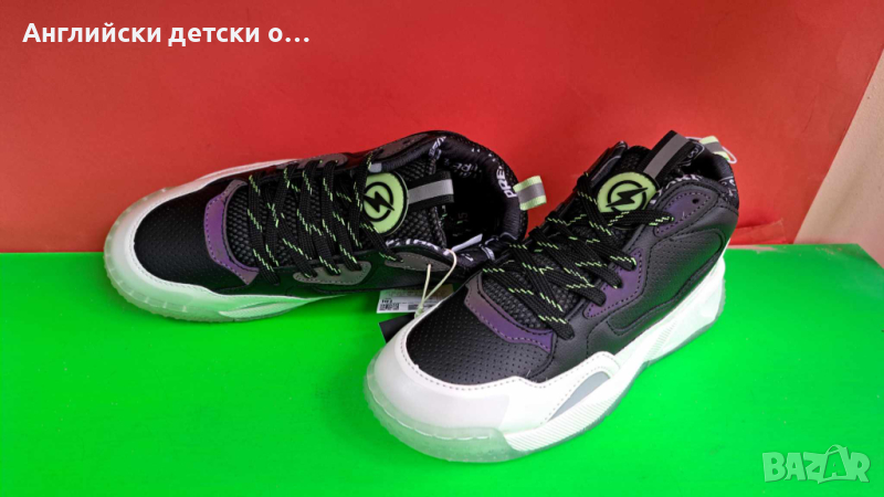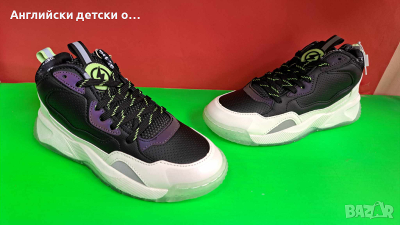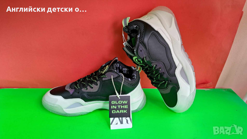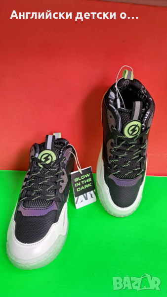 Текстилна материя и кожа, стелката е с мемори пяна, светят в тъмно фосфорно ,олекотена подметка внос от Англия