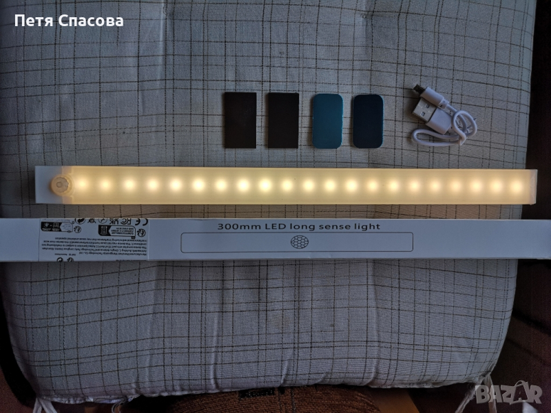 Led лампа със сензор за движение, топло-бяла, 30см.