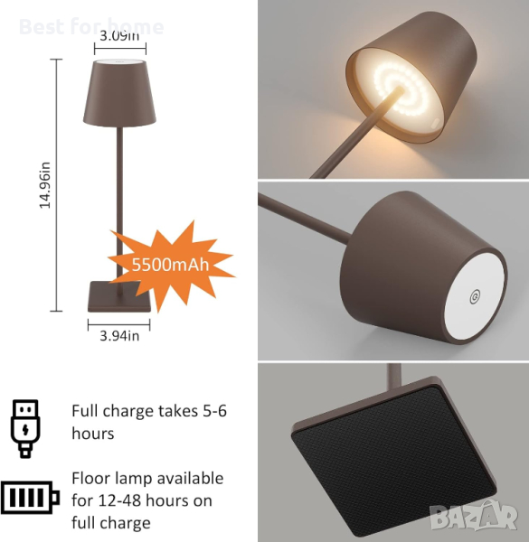 АКУМУЛАТОРНА НАСТОЛНА ЛАМПА Liyabber Вградена акумулаторна батерия/3-цветно плавно затъмняване/Порт за зареждане тип C, Отървете се от оковите на традиционните жични настолни лампи. Можете да поставите безжичните настолни лампи навсякъде. Можете да свържете лампата чак до стенния контакт, за да я използвате като нощно шкафче и лампа за четене. Елегантна и изящна форма, много модерен, топла светлина, ви носи топла атмосфера. Може да бъде и преносимо осветление през нощта, като например барове, вечери за двойки, партита на открито или къмпинг. 360° съраунд осветление Удобно сензорно управление 3 цветно безстепенно затъмняване Преместете го навсякъде USB C портове за зареждане Перли за LED енергоспестяваща лампа Лесен монтаж Страхотен подарък за приятели и семейство Димируема настолна лампа със сензорно управление безстепенно затъмняваща нощна лампа Настолна лампа с димируема LED сензорна яркост LED акумулаторни настолни лампи Защо да изберете настолна лампа Liyabber? Лампата е изработена от висококачествени материали и всяка лампа е много издръжлива. Превключвателят за настолна лампа може да се регулира лесно с натискането на бутон в горната част на абажура. Акумулаторната настолна лампа може да бъде поставена навсякъде без свързване на кабели. Красиво опакован, може да бъде подарен на вашето семейство и приятели. Забележка: Моля, съхранявайте го при нормална температура и налягане. Вградена батерия, моля, пазете от огън. Подробни параметри Цвят черен Материал: Метал + Акрил Източник на светлина: Вграден LED Мощност: 5W Входно напрежение: DC 5V/2A Капацитет на батерията: 5600mAh Време за използване: 10~40 часа Превключвател: сензорен превключвател, безстепенно затъмняване Изтънчен и модерен външен вид LED нощна лампа Дъното на настолната лампа за открито използва мек силикагел, за да предотврати плъзгането на дъното. Позволява ви да го поставите на всяка вътрешна/външна плоска повърхност. Тази лампа осветява тъмен ъгъл на вашата спалня или всекидневна, добавяйки уютна и релаксираща атмосфера, а също така е чудесна като нощна лампа. 360-градусова съраунд светлина нагоре и надолу, без вграден LED източник на светлина без трептене. по-висока яркост, добавяне на атмосфера родител-дете и по-добра защита на очите. Проектиран с мек, стабилен и нетрептящ светодиоден източник на светлина. Страничната лампа няма да заема твърде много място. Подходящ е за учене или работа. Безжичният преносим дизайн е лесен за разглобяване и сглобяване и също така е много подходящ за използване в търговски среди, като барове, ресторанти и т.н., и може също да добави атмосфера при къмпинг. Минималистичен дизайн, може да се съчетае перфектно с околната среда, също така е добра декорация, страхотен подарък за приятели и семейство.