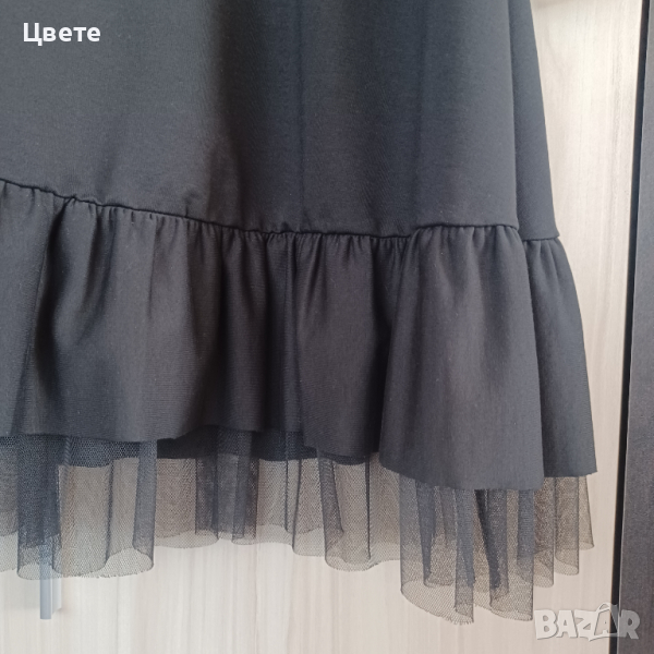 Роклята е нова, но няма етикет, свободен силует, от много хубава материя, завършва с тюл