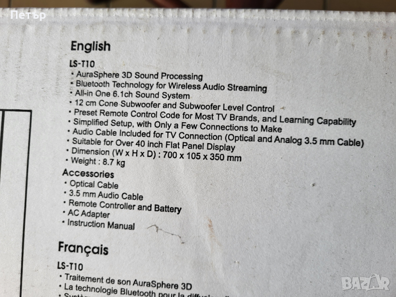 Включва се сам със телевизора и изгасва сам,УСИЛВАНЕ И НАМАЛЯНЕ ЗВУК ОТ дистанционното на всеки телевизор,неговото може да не се ползва!? Нужно само да се включи оптичния кабел към Телевизора .Много тежък.Телевизора може ДА СЕ ПОСТАВИ ВЪРХУ НЕГО